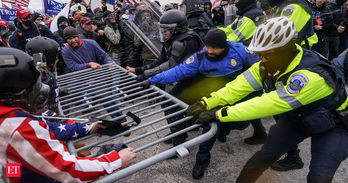 Closely armed safety officers, together with a number of driving horses, patrolled close to authorities buildings, whereas males boarded up storefronts after darkish on Tuesday to guard in opposition to vandalism.