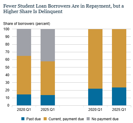 Query of the Day: What share of debtors who at the moment have a fee due on their scholar loans are behind on funds?