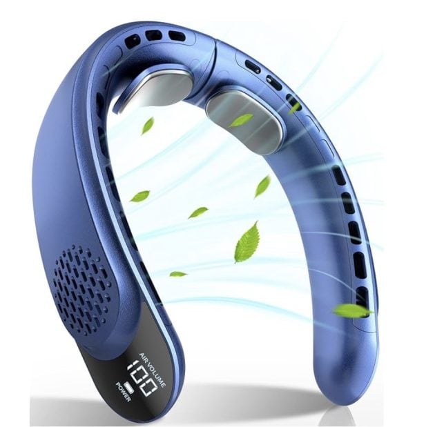 Prime members can get this Rechargeable Neck Fan in Blue for under $12.99 shipped while you clip the 50% off coupon proper now!