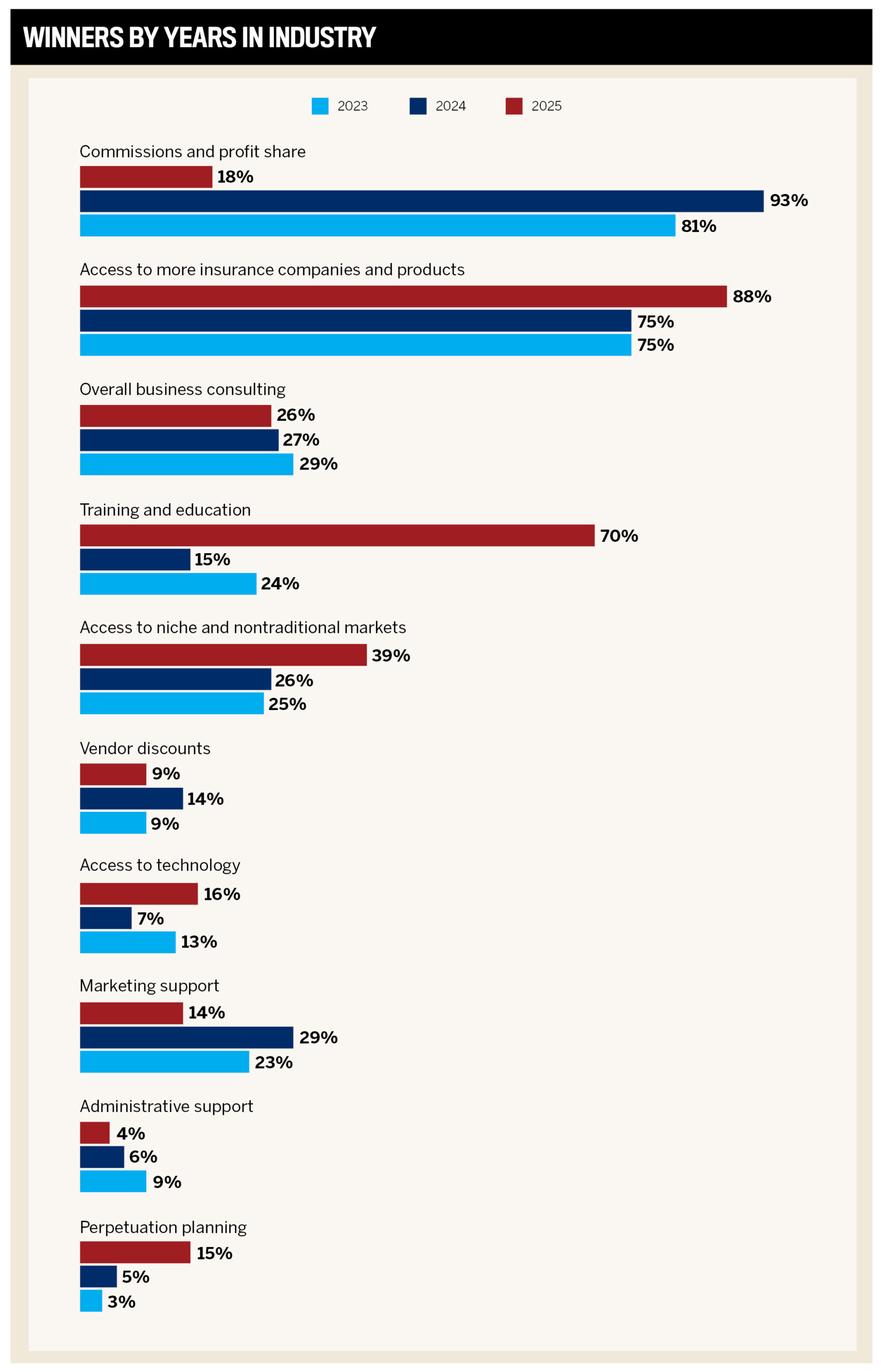 Insurance coverage Enterprise America’s 2025 knowledge reveals that entry to extra insurance coverage corporations and merchandise is the largest motivating issue for brokers to affix networks (88.3 % of brokers in 2025, up from 75 % in 2024 recognized it as their high motive). This once more highlights the turbulence brokers throughout the US are feeling, and a collective want to stay in a powerful place to ship the merchandise their purchasers want.
